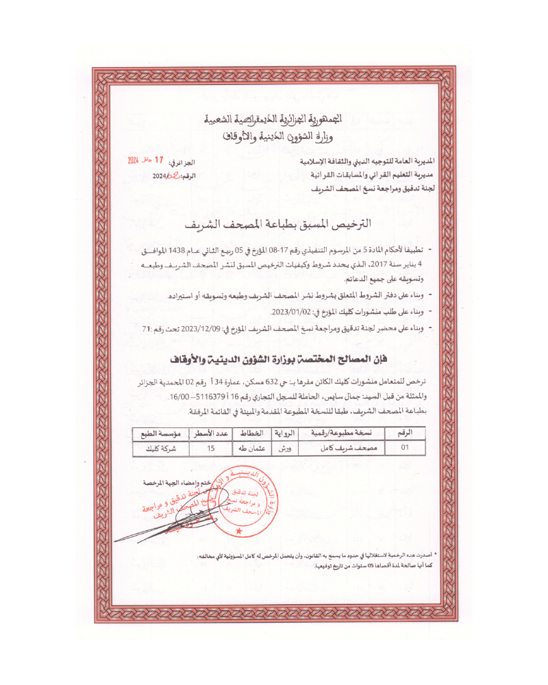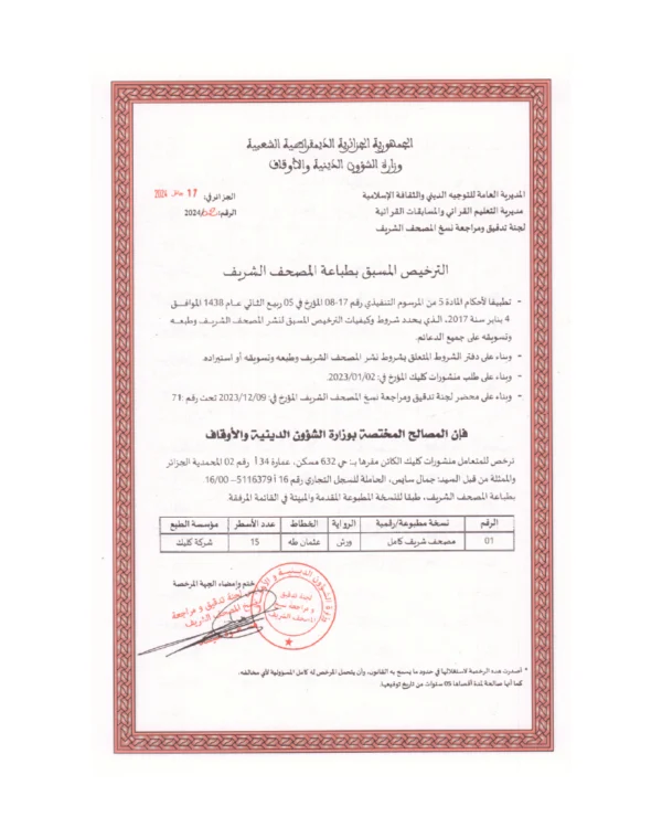 مصحف القرآن الكريم – قياس 17 / 24 سم